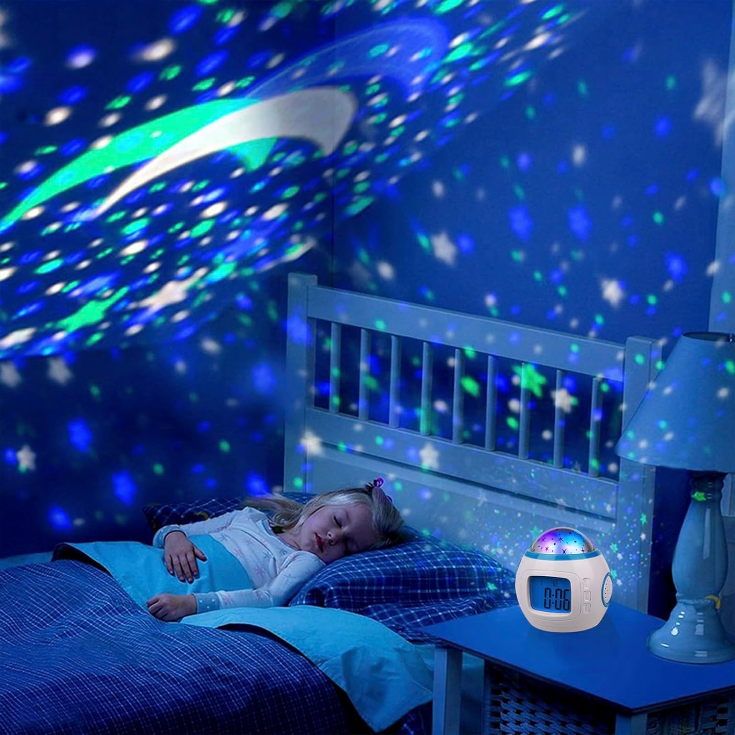 Kids Alarm Clock, Stars 7 Color Changing Night Light, Digital Alarm Clock Temperature Detect for Toddler, Children Boys and Girls, Students to Wake up at Bedroom, Bedside, Batteries Operated